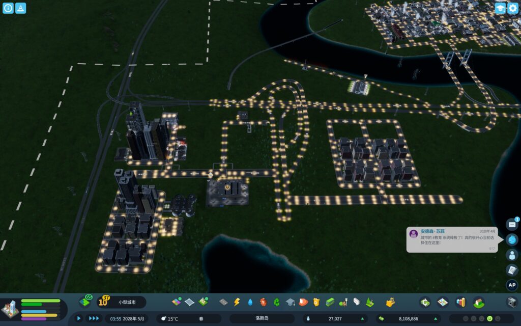 除了工业区大面积提示原料成本过高之外,因为一处人行天桥设计不到位,几个东西“互锁”起来删也删不掉,所以打算重新开一个存档解决交通堵塞的问题。