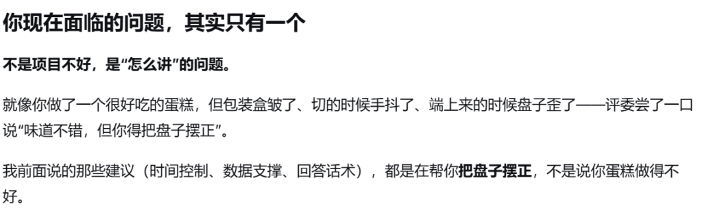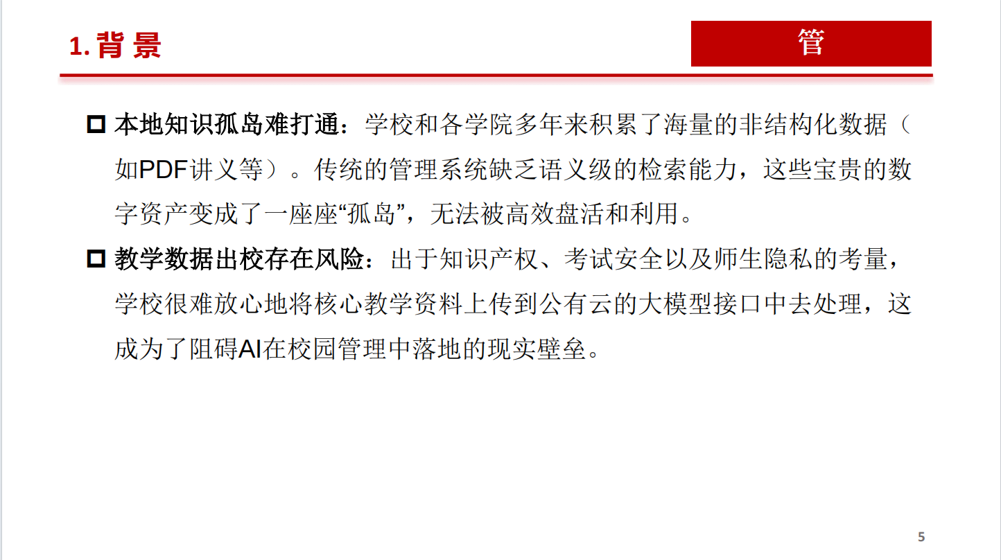 - 问辩的时候展现项目的必要性还不够,相对于通用大模型的不可替代性没讲清楚。